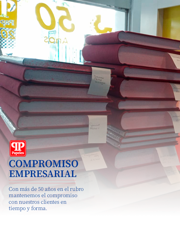 - Encuadernados con tapas de cartón rígido, forradas con material símil cuerina, con color a elección.