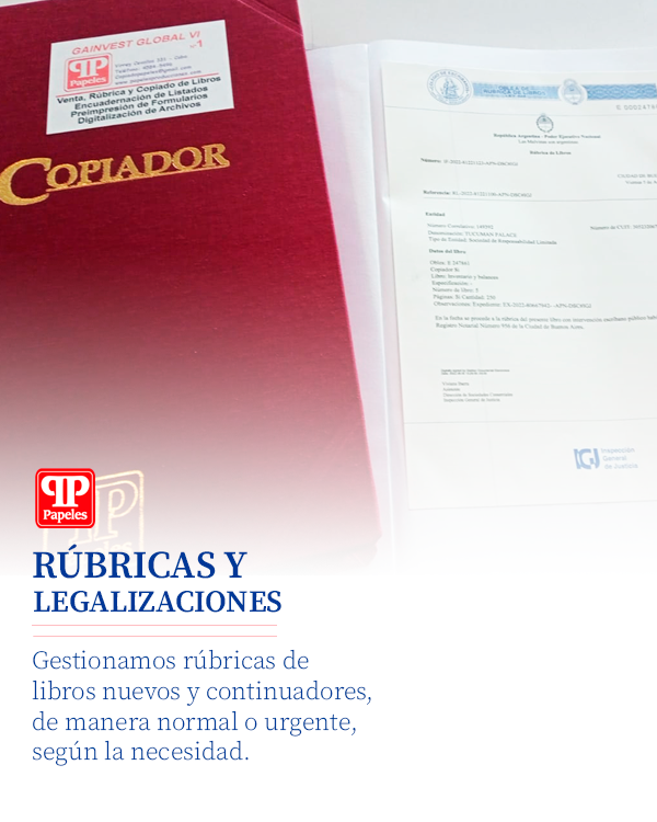 Libros para sociedades comerciales y asociaciones civiles, cambios de jurisdicción, rectificaciones, transferencias.