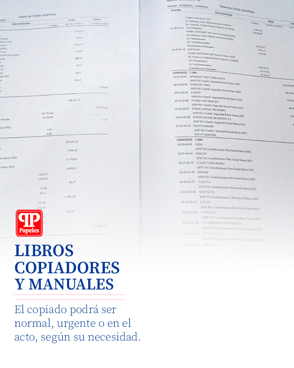 El copiado es la transferencia de los comprobantes en los libros societarios, para registrar los movimientos contables de la empresa. Puede enviar la información on line, papel o pen drive. El copiado podrá ser normal, urgente o en el acto, según su necesidad.